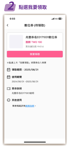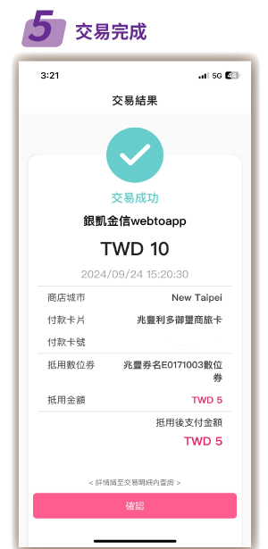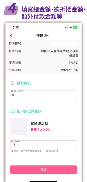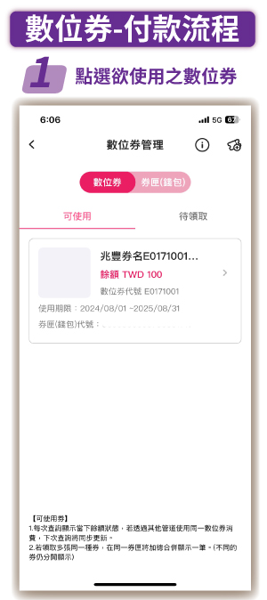 - 款券合用:獨家首創!數位券額度不足支付商品金額時,可於付款畫面直接選擇欲使用的支付工具(如金融卡、信用卡等),出示一次畫面即可完成「款+券」交易,輕鬆又優雅!