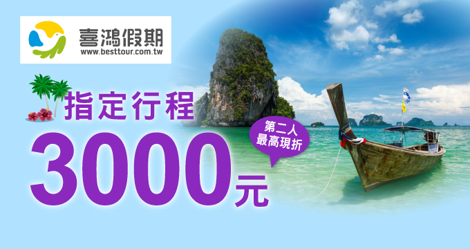 .「東南亞跟團」商品兩人同行,第二人現折NT$3,000。