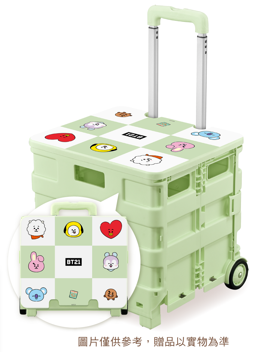 新戶於活動期間申辦宇宙明星BT21信用卡正卡且核卡成功,並於核卡後30日內完成所有【新戶首刷禮指定任務】且登錄成功,享BT21摺疊購物車乙個。(限量1,200個)