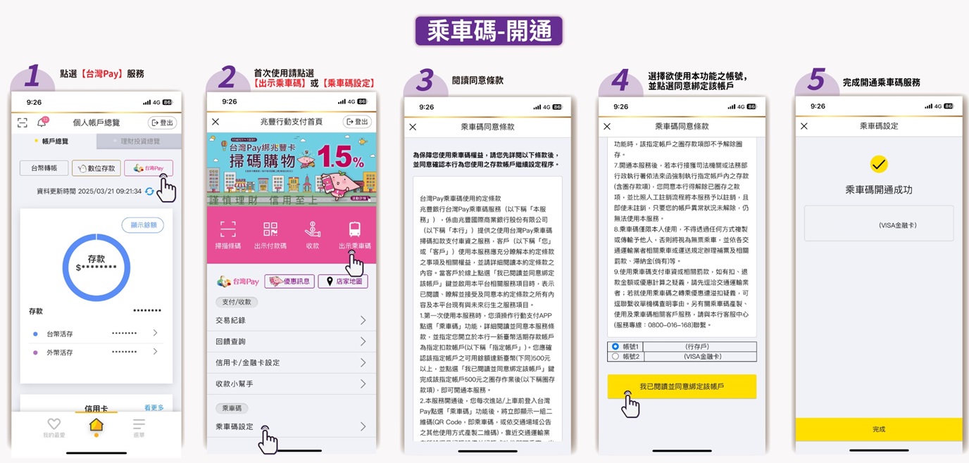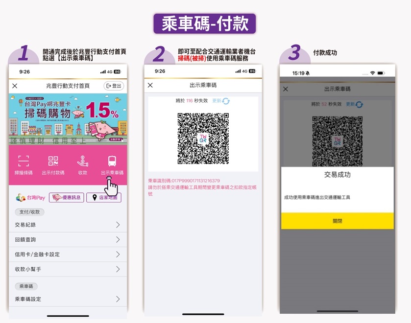 活動對象:使用兆豐行動銀行APP或台灣行動支付APP完成啟用「TWQR乘車碼」功能(限金融卡/帳戶)。